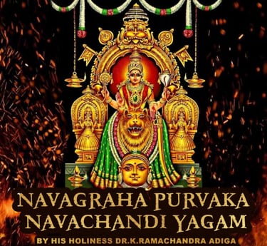 This sacred yagam will be conducted under the divine guidance of His Holiness Dr. K. Ramachandra Adiga, Thantri of the renowned Mookambika Temple, Kollur. The ritual invokes the blessings of the Divine Mother along with the Navagrahas to remove obstacles, mitigate planetary afflictions, promote prosperity, health, protection, and inner transformation.
